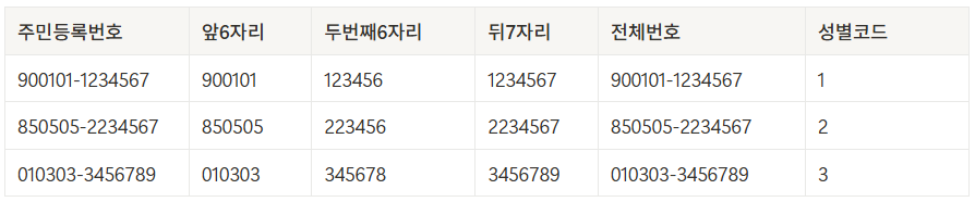 - Ex1) 주민등록번호에서 특정 부분 추출하기
