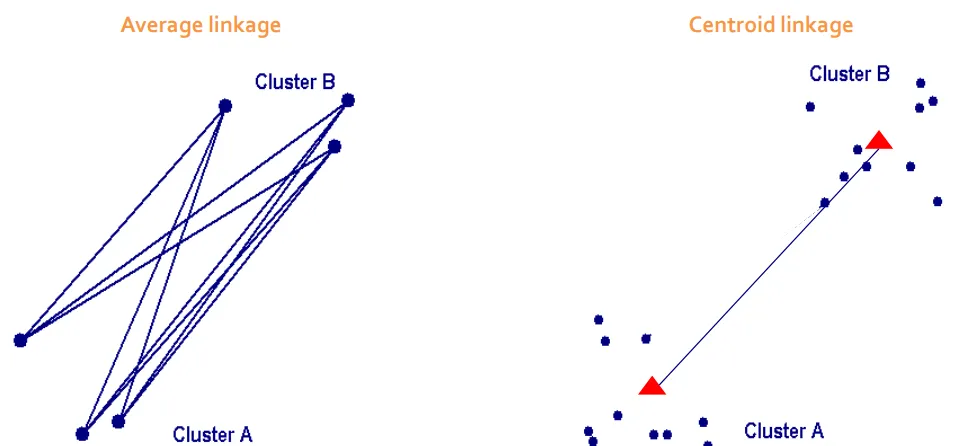 ‘거리’를 측정할 때는 보통 min, max를 사용하는데, 이상치의 영향을 상쇄시키기 위해 average나 centroid 값을 이용하기도 합니다.